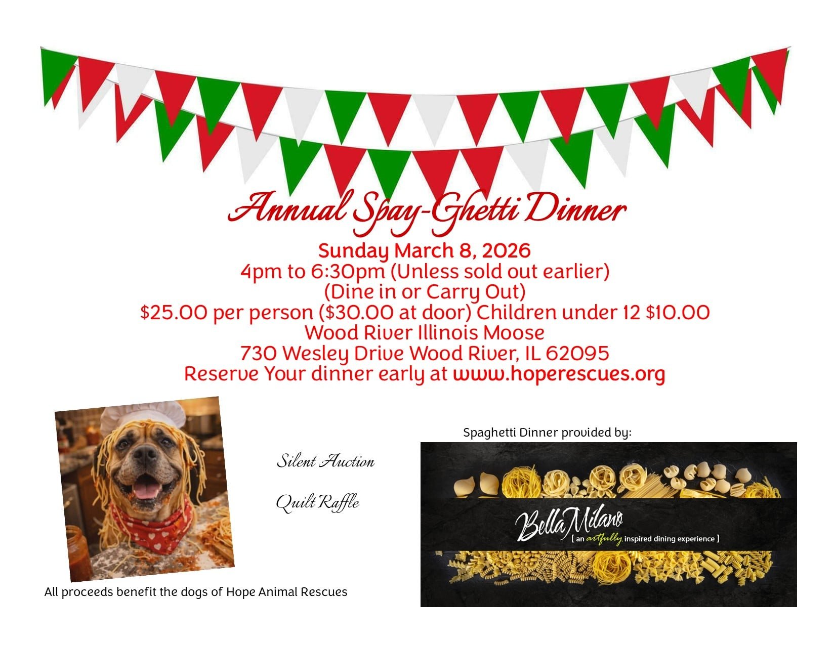 Please note that only reserved dinners are guaranteed. So buy yours today at www.hoperescues.org This event will also feature a silent auction and a beautiful quilt raffle.