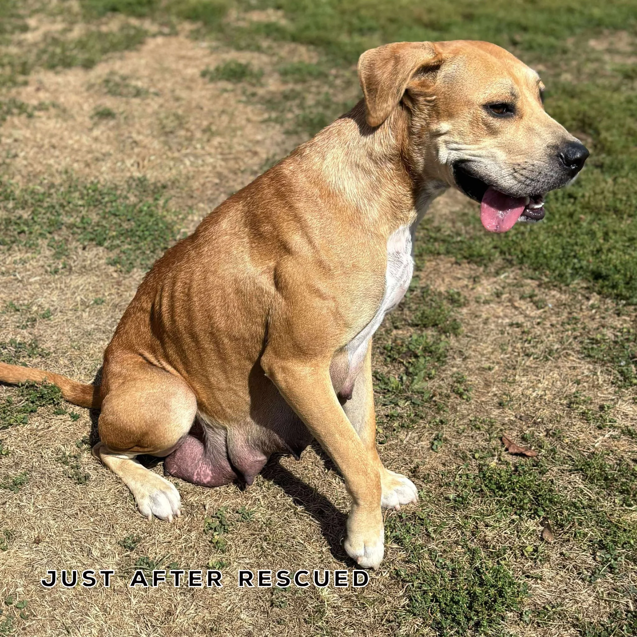 Clawdeen was found on a lonely country road, doing everything she could to keep her puppies alive. She gave them every ounce of herself—literally. She’s heartbreakingly thin right now and not quite ready for adoption, but she’s safe, loved, and slowly gaining strength.