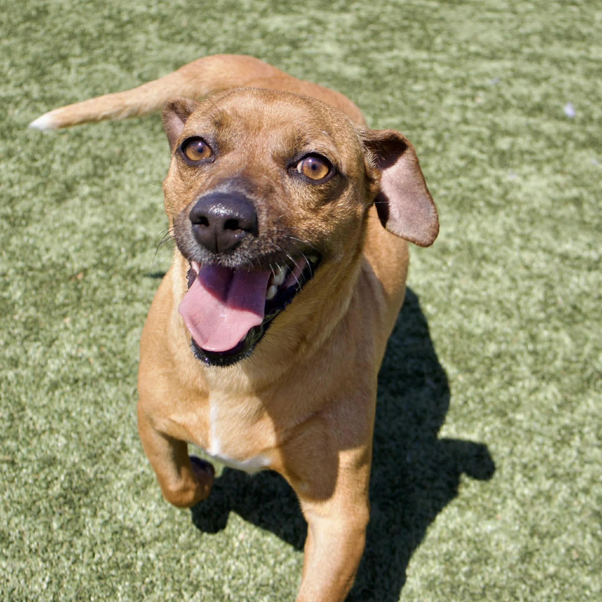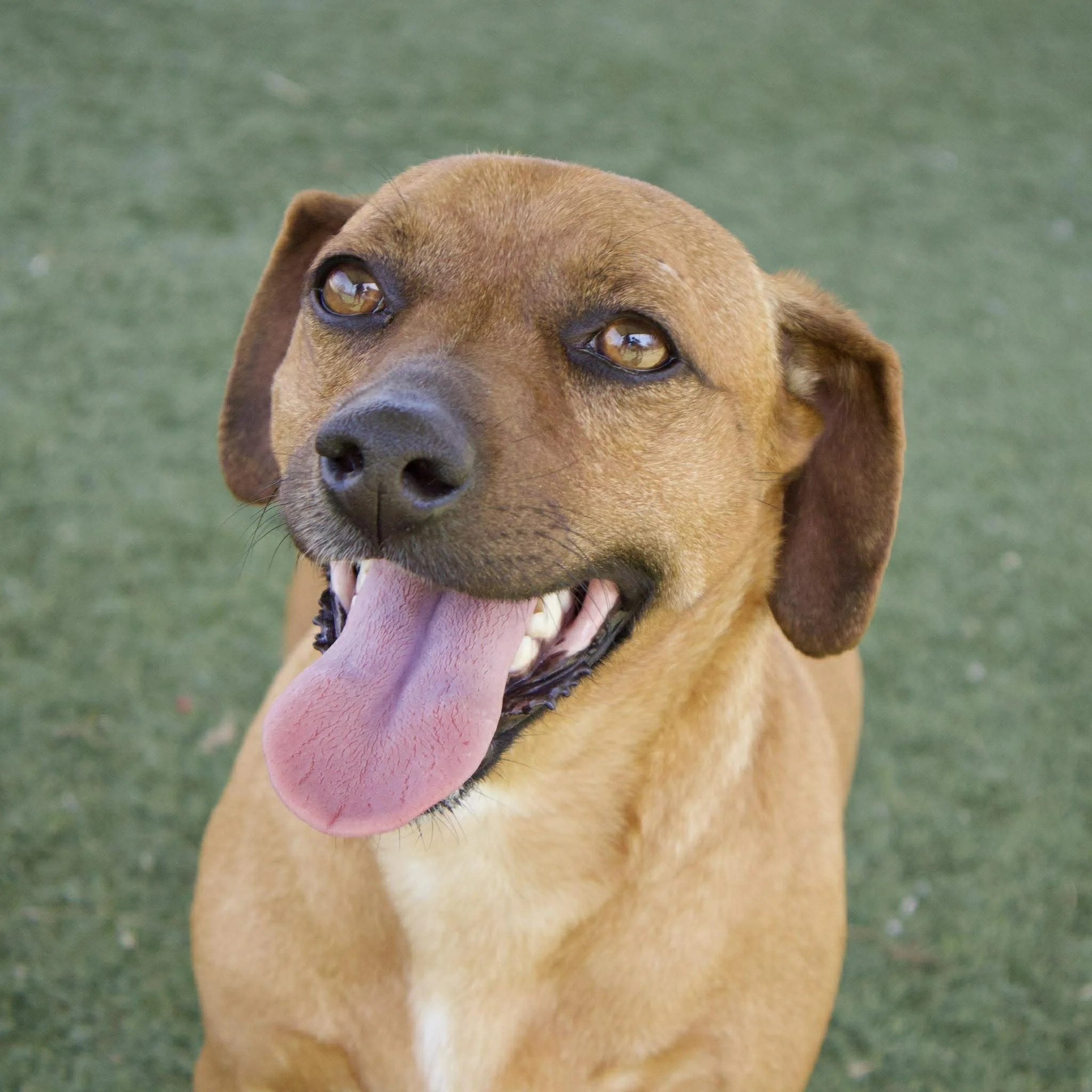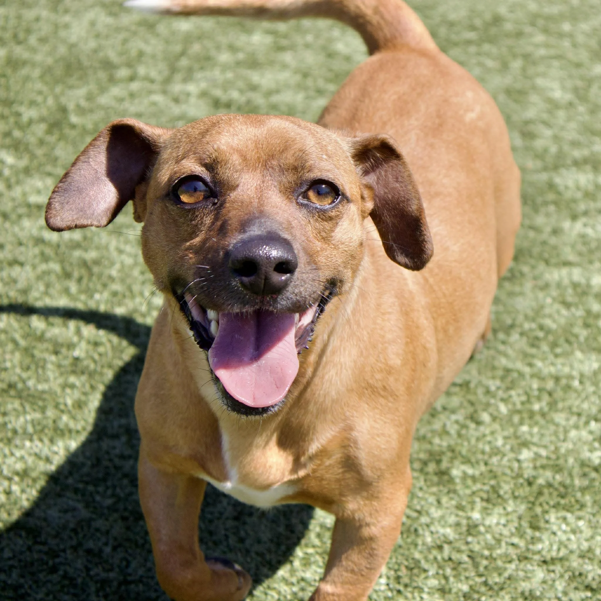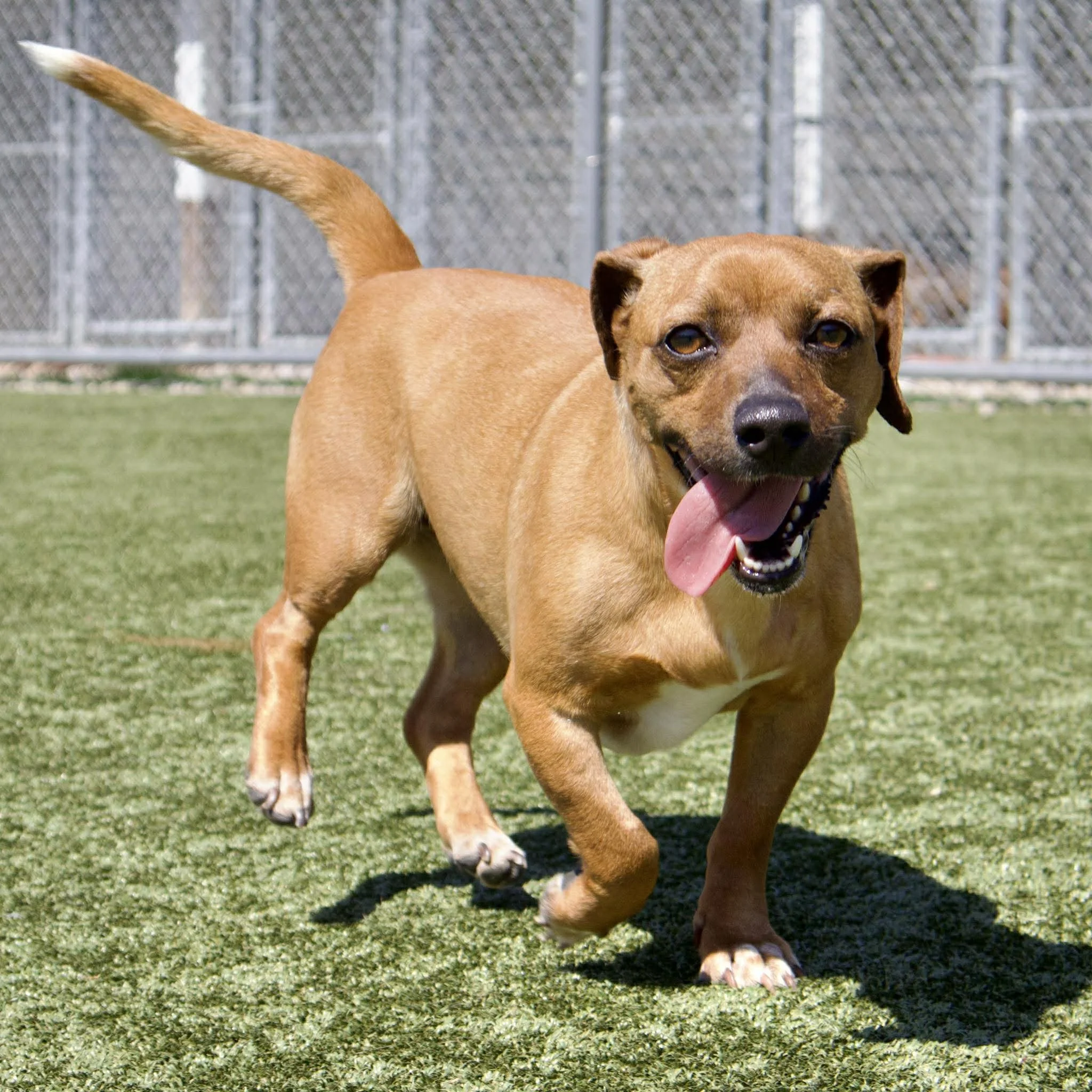Ginger is a friendly little sweetheart who loves to play and snuggle in equal measure. She gets along great with dogs her own size and brings a fun, happy energy to every moment. We’re not sure how she feels about cats yet, but she’s definitely open to making new friends.