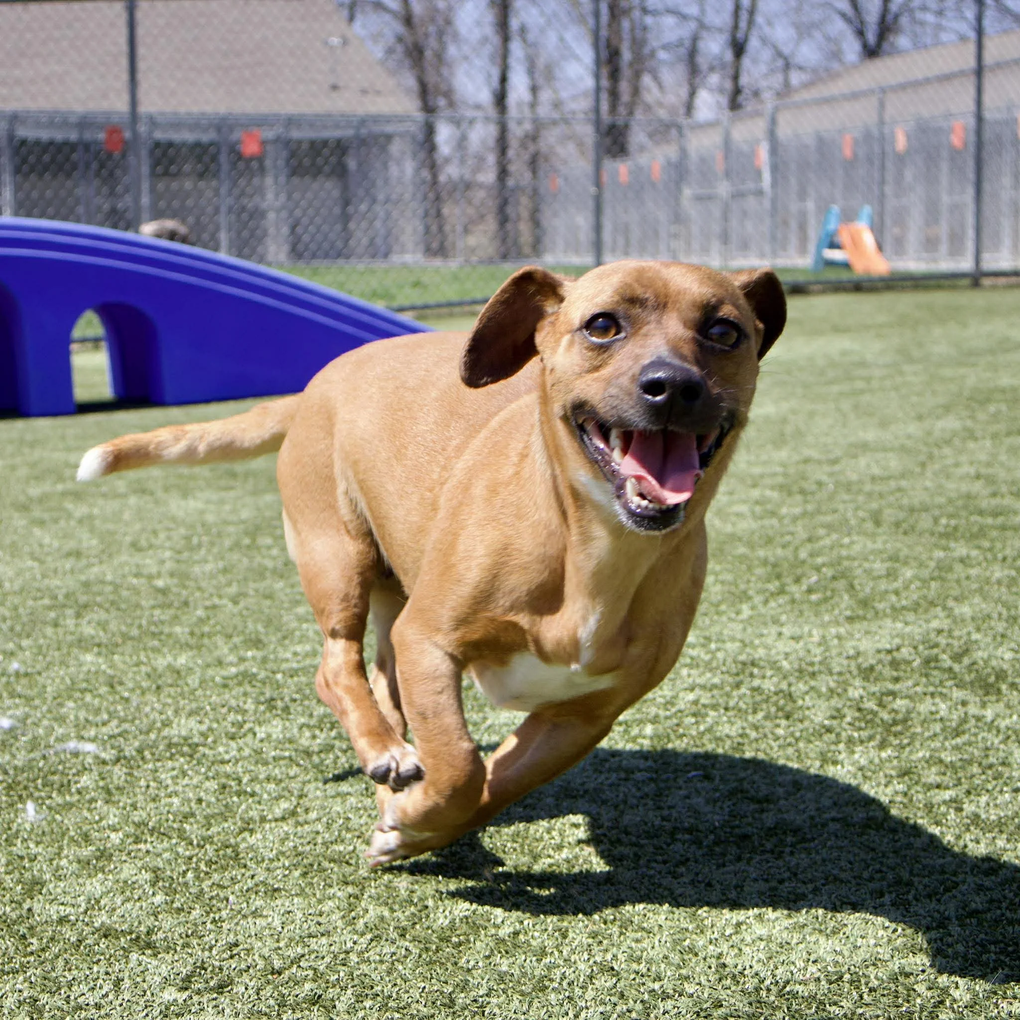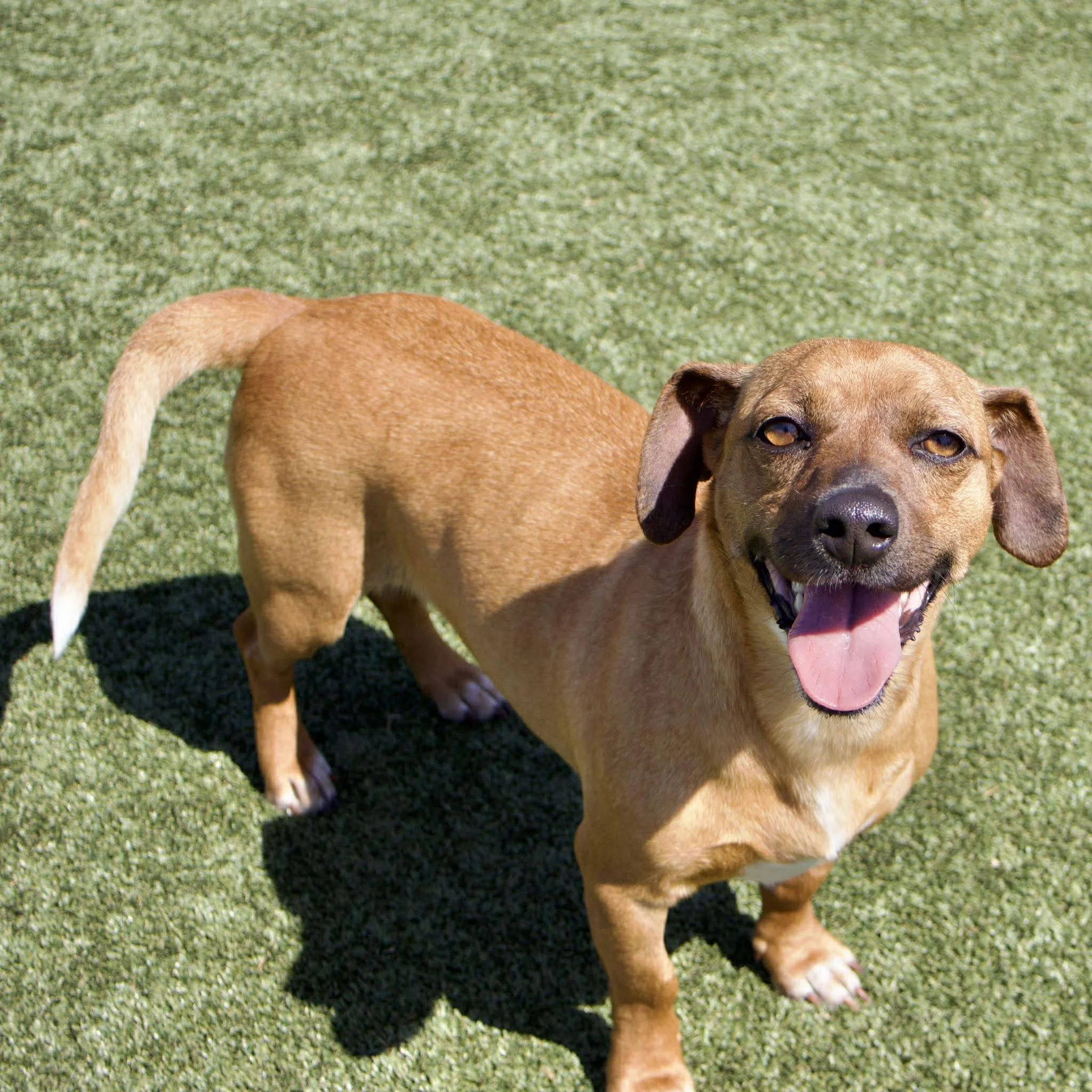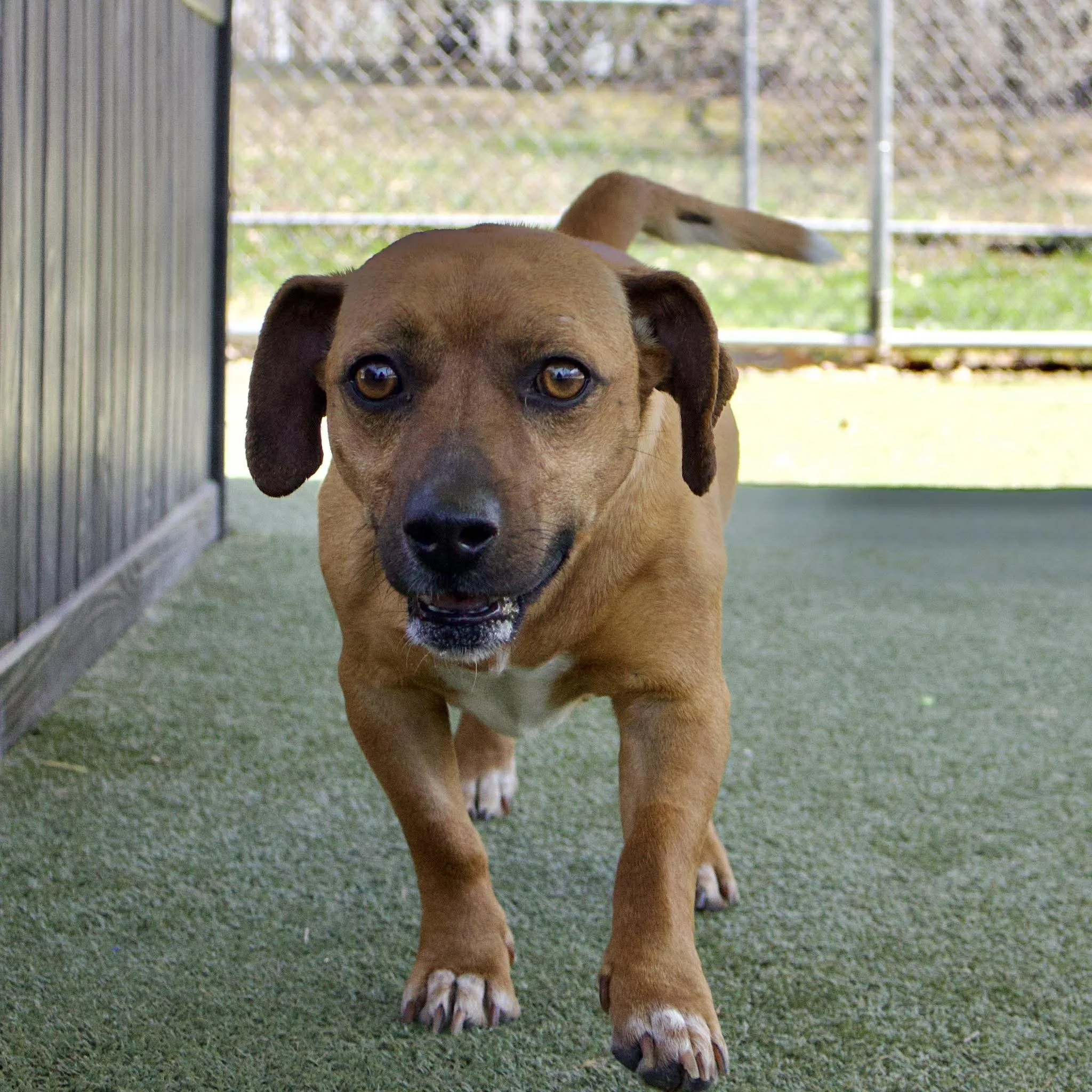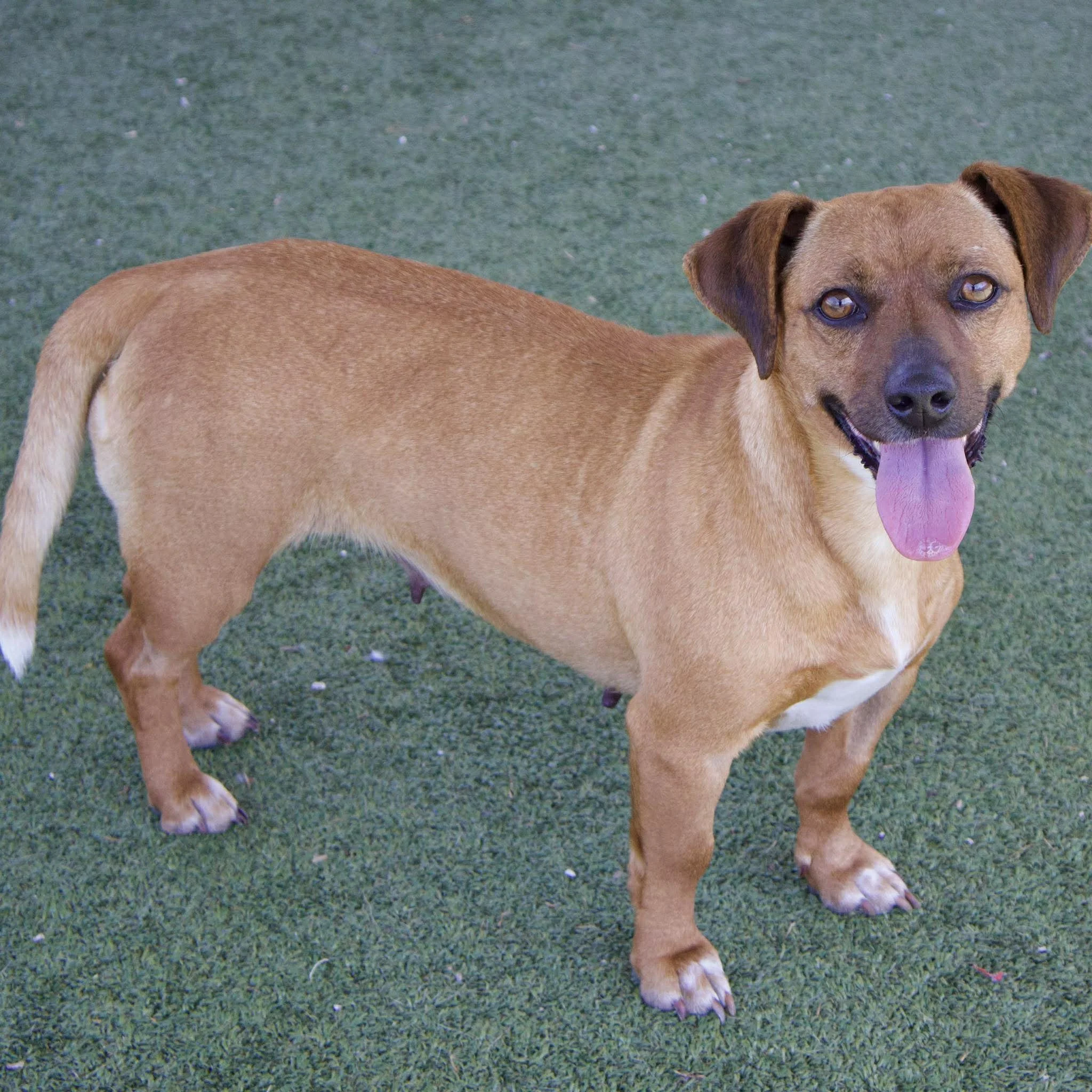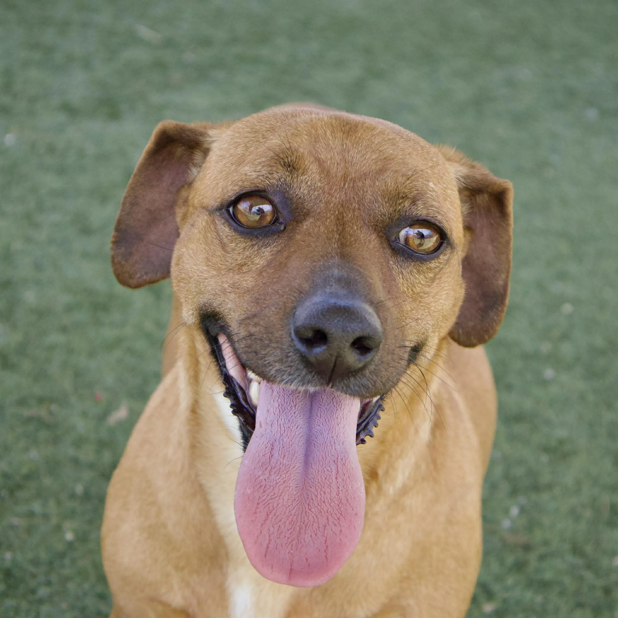 Ginger is a friendly little sweetheart who loves to play and snuggle in equal measure. She gets along great with dogs her own size and brings a fun, happy energy to every moment. We’re not sure how she feels about cats yet, but she’s definitely open to making new friends.