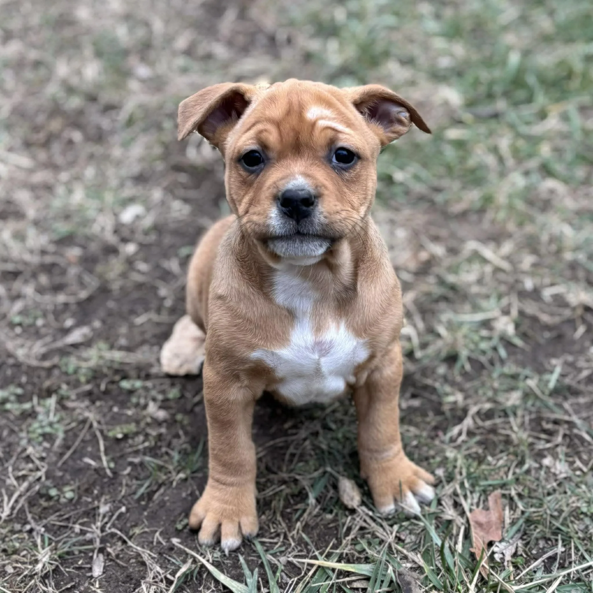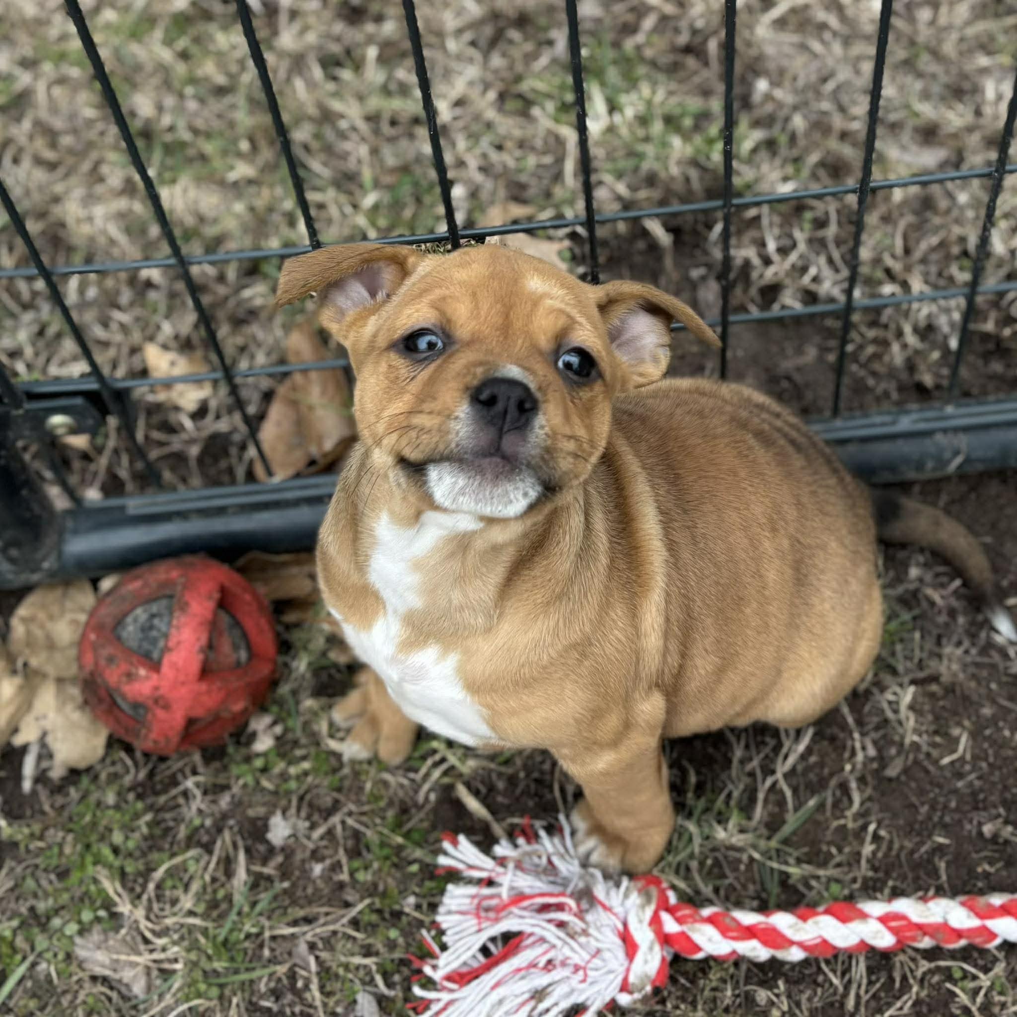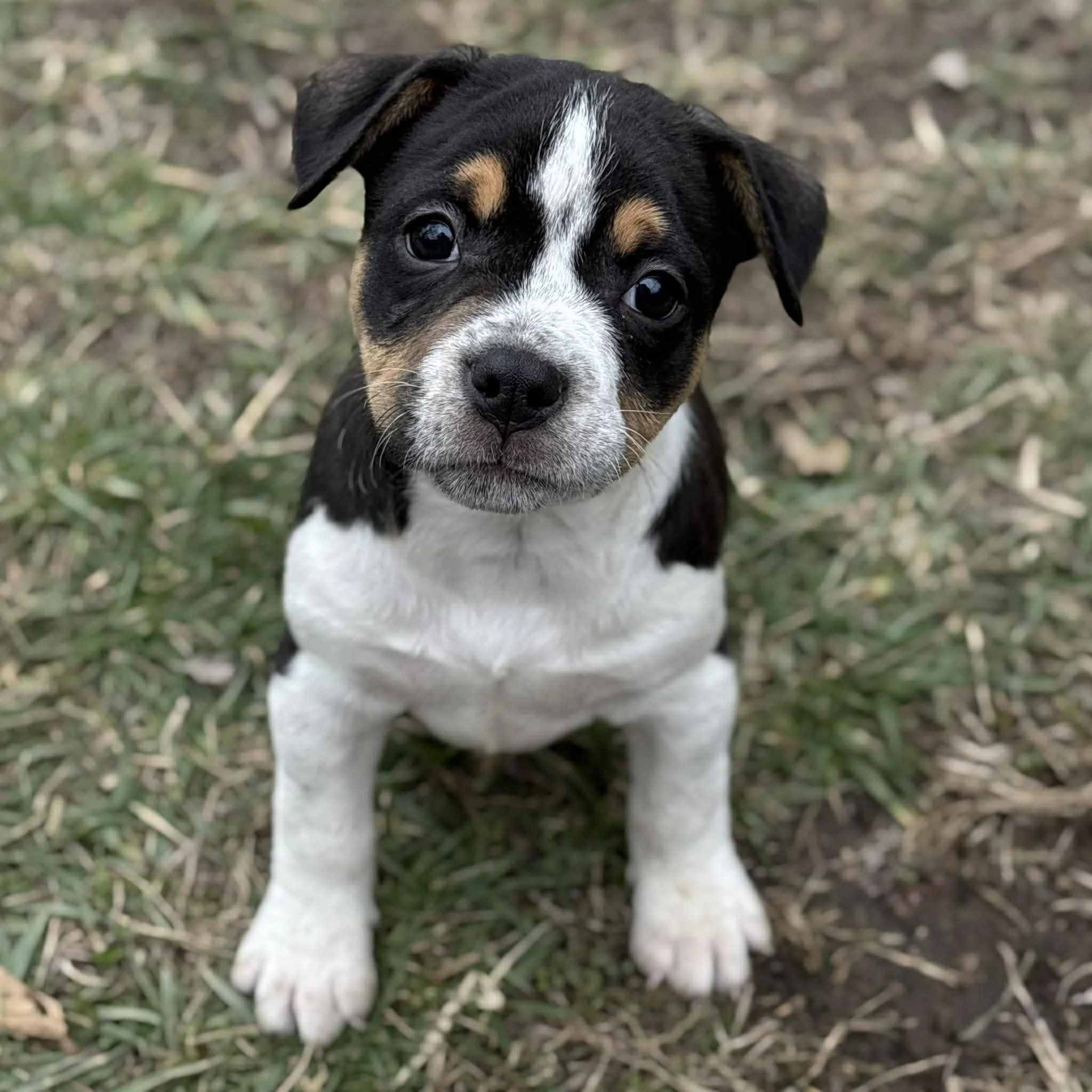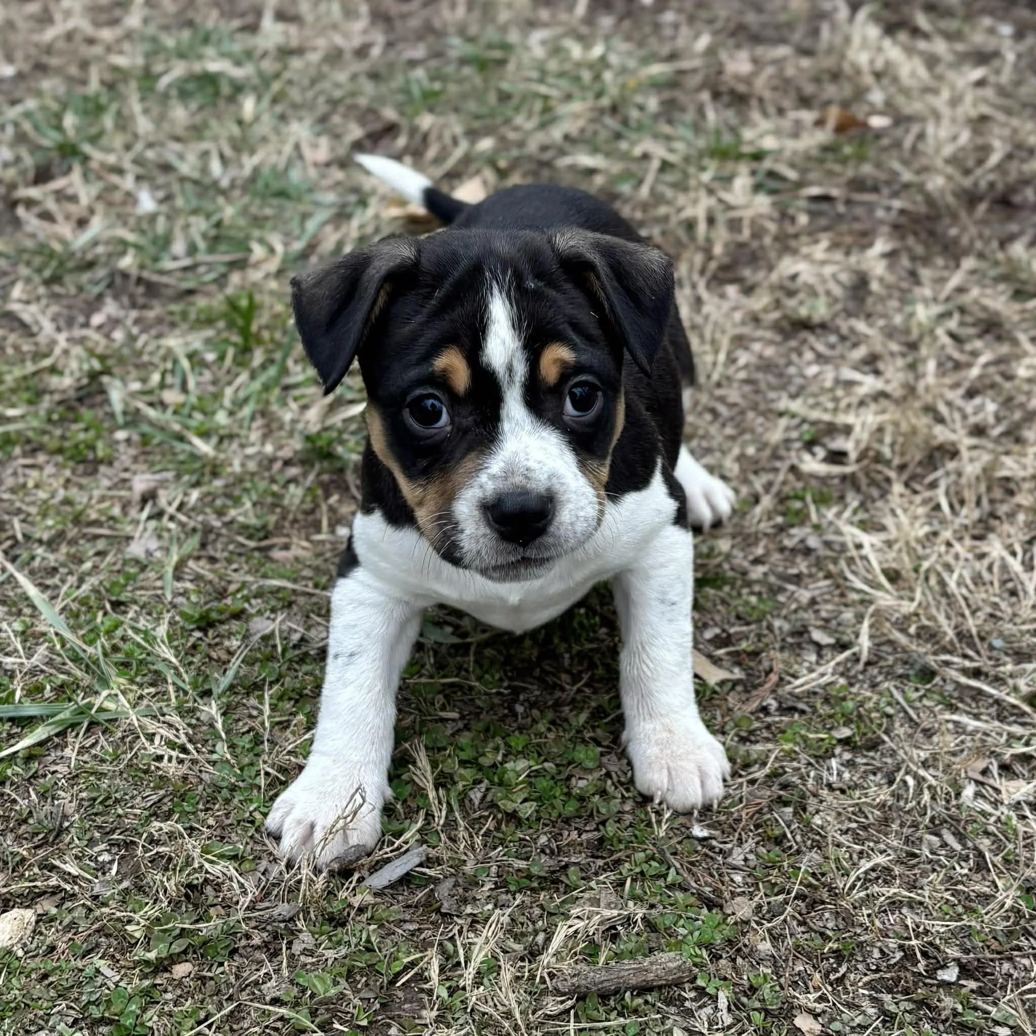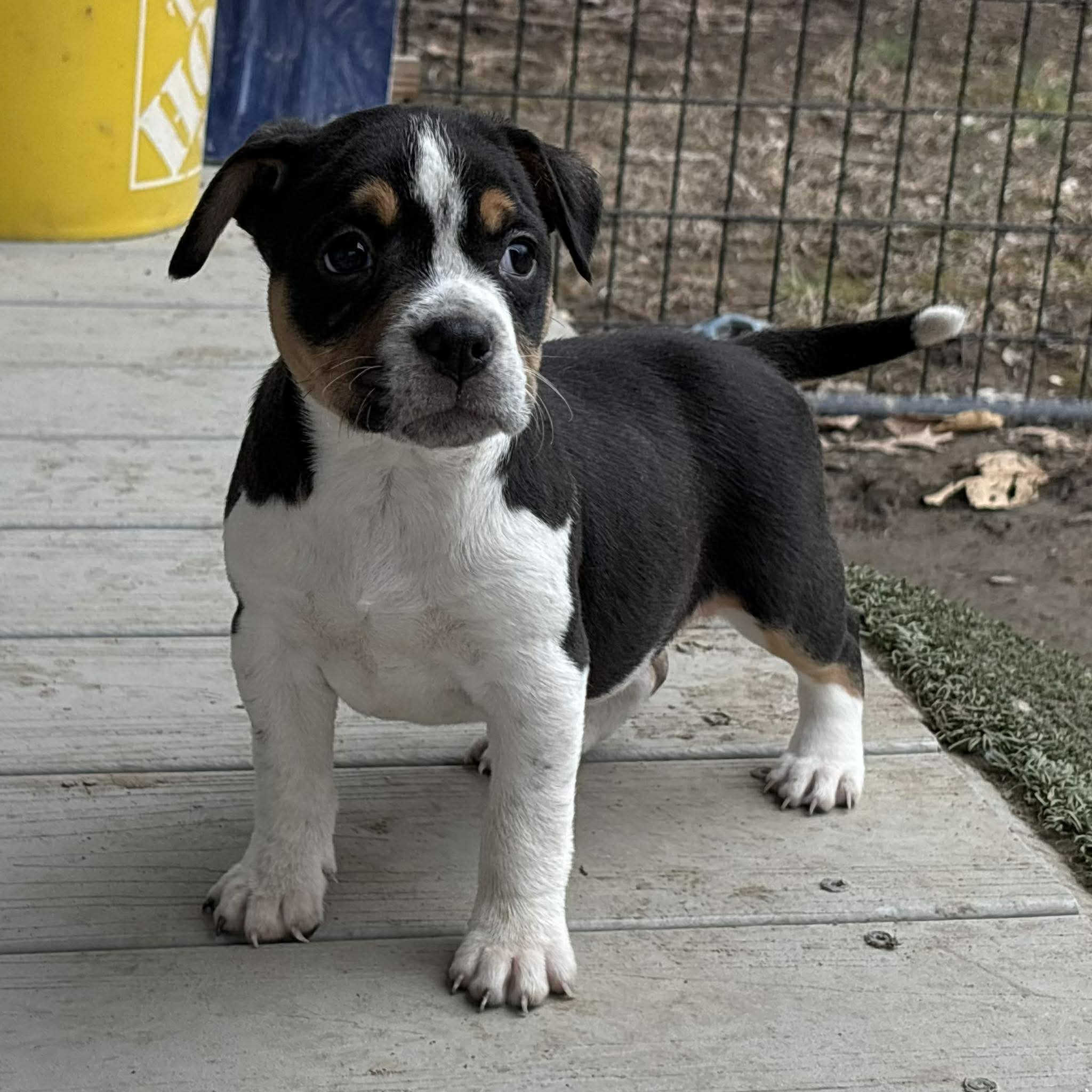 /This cutie was born right around December 5th, 2025, and she has been melting hearts ever since. Their mom, Karen, is a sweet Beagle mix, and dad was a handsome Pit mix — which means these pups hit the jackpot in both looks and personality.